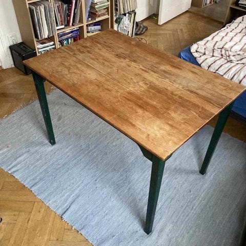 Rejäla och rustika gamla bord i massivt trä - finns TOTALT 19 ST- troligtvis mörkbetsad ek samt bok.