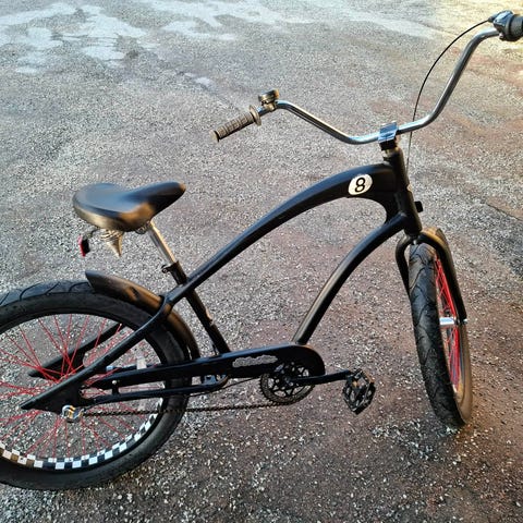 Uppseendeväckande Nirve cruiser cykel m döskallar flames