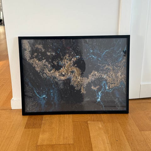 Svart ram 52,5x72,5 från rusta, det sitter en plansch med en motorcykel i tavlan som enkelt kan tas bort.