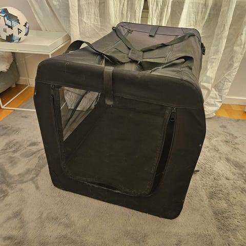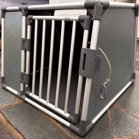 Trygg hundkennel, godkänd för flyg. Endast använd en gång.