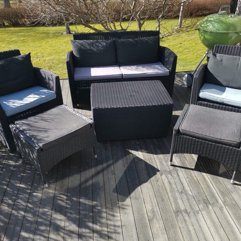 Gruppen är inköpt nytt våren 2022 från gekås och är svart rotting med gråa dynor.