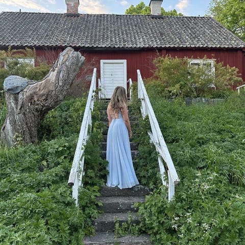Superfin balklänning från Ivory Field, köptes tidigare i år för bal i juni. Använd en enda gång. Köptes då för 3.300kr Enligt kvitto; Chiffon Faith Dress size 36 dark navy