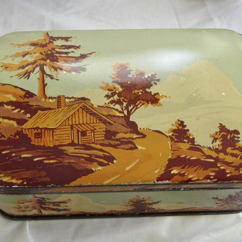 Antik plåtburk, bruna bönor, Carl Peter Påhlson, Malmö