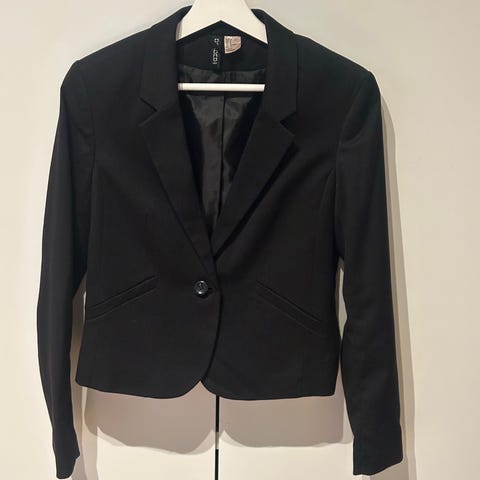 Beige kavaj i stl 38 som motsvarar S/M. Kavajen är välsittande, i ett följsamt material, 65% bomull, 30 % Nylon och 5% Elastan. Maskintvätt, handtvätt, 30 grader. Perfekt för vår och höst. Till klänning eller mörka byxor. Finns att hämta centralt på Östermalm eller skickas med post.