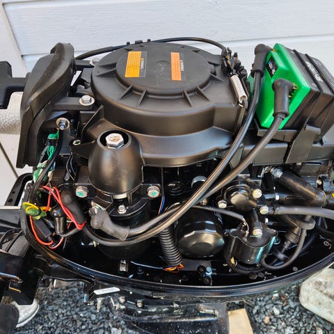 Är man sugen på båten motorn sitter på: en dubbelskrovad Ryds attack fullt utrustad med åror, årtag, solcellspump, motorlås så kan vi diskutera det. Motorn sitter på båten. Den är testad och går bra, det är som sagt en ny motor och den har startat direkt vid nyckelvrid. Bara att komma hit och testa. Pris 20000 kr för motorn. 24500 för båt + motor inklusive det jag nämnt ovan. Vill man ha med extrasaker (ex ett nytt batteri eller en bränsletank) så tar vi 800kr för batteriet och 200 för tanken. => Nyckelfärdig båt med nyare 20hk-motor inklusive allt = 25.500.