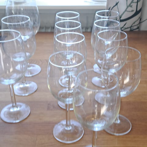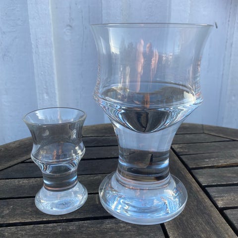2 st stilrena vinkaraffer. Helt nya. 27 cm höga. 100 kr för båda