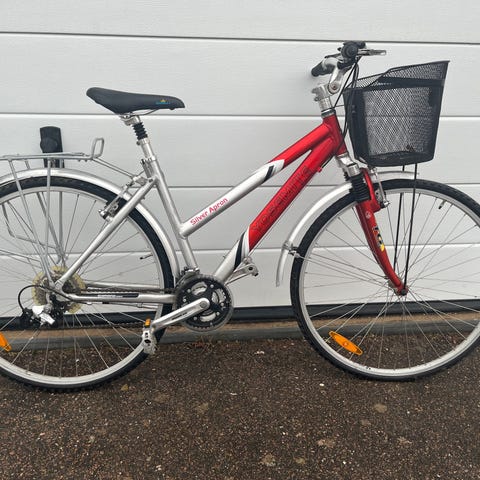 28 tum, 3 växlar, korg fram, pakethållare, stänkskärmar och stöd.