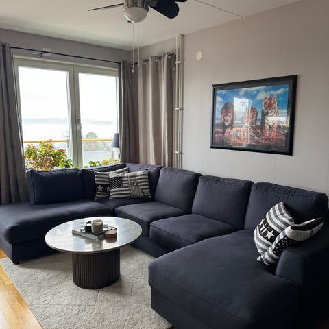 Fin soffa, med ett strykjärnsmärke på armstöd, enda synliga skavank. Måtten är: