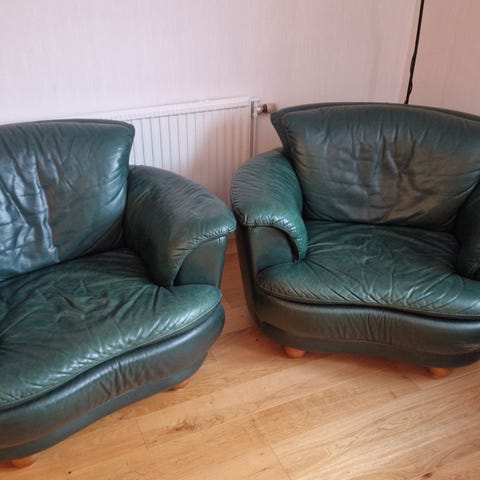 Skinnfåtölj, retro, 2st, bortskänkes!!