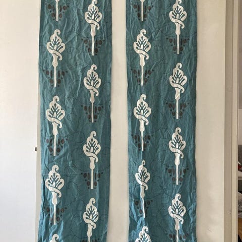 Löpare oanvänd 45&150 cm bomull , gardiner 40& 220 cm . Katt finns i hemmet.
