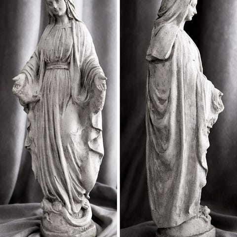 Varje staty är unikt handgjord i rustik betong, vilket ger den en äkta, levande känsla och gör den till både ett konstverk och en meningsfull symbol. En vacker inredningsdetalj, men också en investering i ett klassiskt motiv som aldrig tappar i värde eller betydelse.