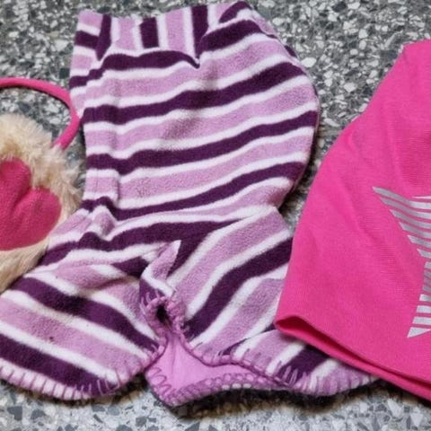 Gulligt rosa set, tröjan är i storlek 116 och byxorna 122 men de passar mest troligt ändå.