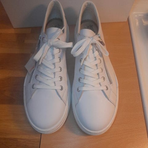 Fina vita sneakers i sportig design. Skorna är helt nya, endast provade. Jag fick dem i present men de är tyvärr för små för mig.