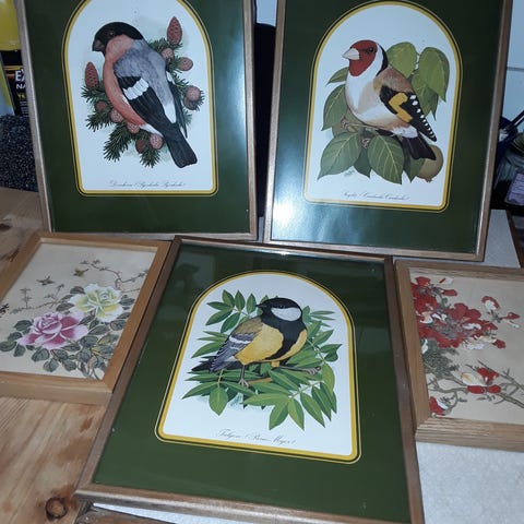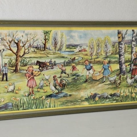 Curt Nyström retro tavla lantlig gård motiv bondeidyll vintage 60-tal tryck bondgård svensk konst inredning röd stuga höns lantligt