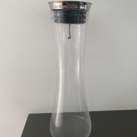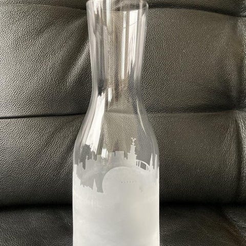 en karaff som rymmer ca 1 liter, skickar inte men kan mötas utefter gröna linjen från Abrahamsberg till Medborgarplatsen