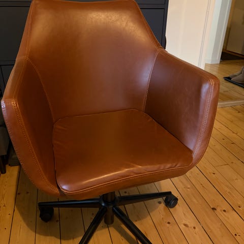 Fina fåtölj i mörkbrun skin imitation.