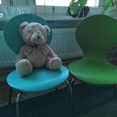 Barnstol, går att justera höjd på sits och fotstödet.
