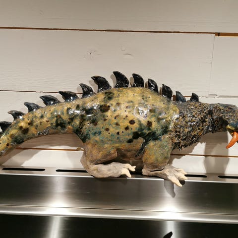 Stor keramikkruka 27cm hög och 22cm i diameter. Låter sprucken när man knackar på den, men håller vatten när jag provat fylla den.