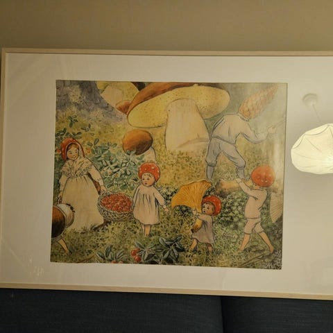 En vacker akvarellmålning som föreställer ett sällskap vid vattnet. Jag vann Målningen. på konstklubben på mitt jobb för ca 20år sedan var värd då 3000kr. Vet ej vem konstnären är. Ram mott ca 90x72cm. Finns att hämta i Uppsala Tuna backar.