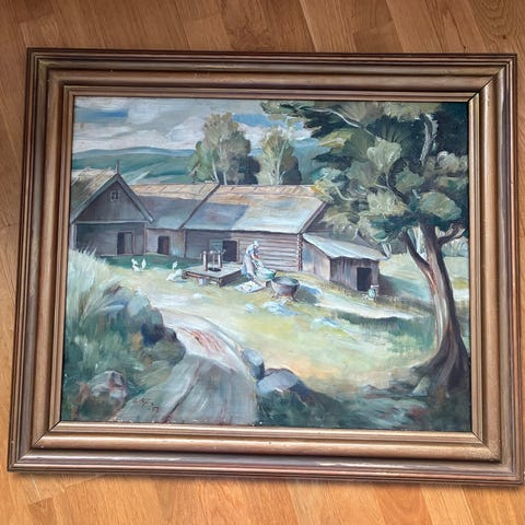 Akvarellmålning Sommar motiv Ram mott ca 90x72cm