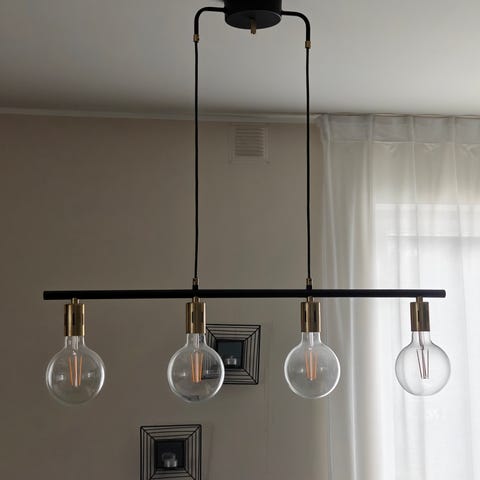 Taklampa med fyra stora glödlampor, 90 cm bred. Kan hämtas i Mälarhöjden eller lämnas av inom hägerstensområdet. Kan också mötas i city eller skickas