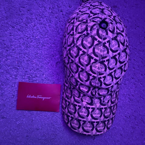 Inuti fodret kännetecknande Ferragamo-mönster + etiket med “Salvatore Ferragamo Made in Italy”