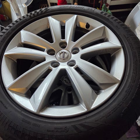 4 st Volvo originalfälgar som suttit på en V90 2018. Ca 3 mm däckdjup kvar på sommardäcken från Pirelli. Däckmått 225/55 R17