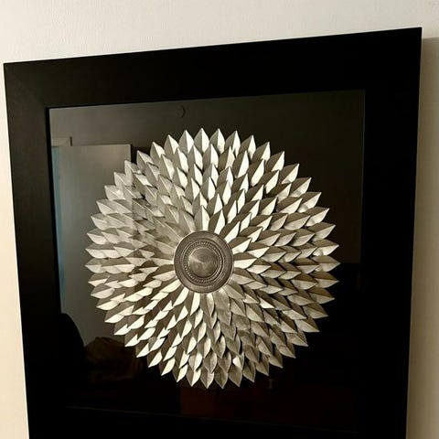 Tavla i vitt/silver/beige. Ca 1X1 m