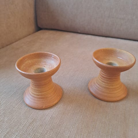 6 st terrakottakrukor, varav 5 st med fat i varierande storlekar.