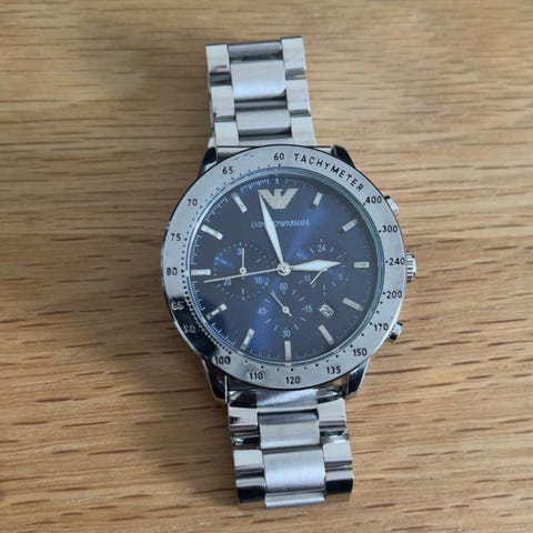 Hej! Säljer min Emporio Armani Renato klocka 43mm fick den i present för ca 1 år sen den har bara legat. Plasten sitter kvar plombering också, eftersom att den bara legat så länge så har troligtvis batteriet dött ut ny pris 4399kr.