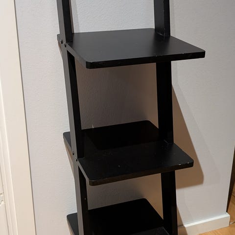 Svart, Ikea, vadholm hylla. Till viss del synligt använd men annars bra skick. Saknar en "täckskruv" i hyllan längst ner.