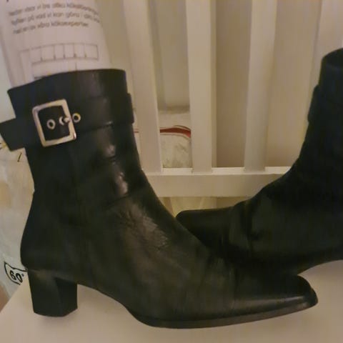 svarta ankelboots Bootsen har en klassisk design med en quiltad detalj och en blank tå. Perfekt för att addera en touch av lyx till din outfit. st 39 Sole width 10.3cm Heel height 5.5cm Height 14.5cm
