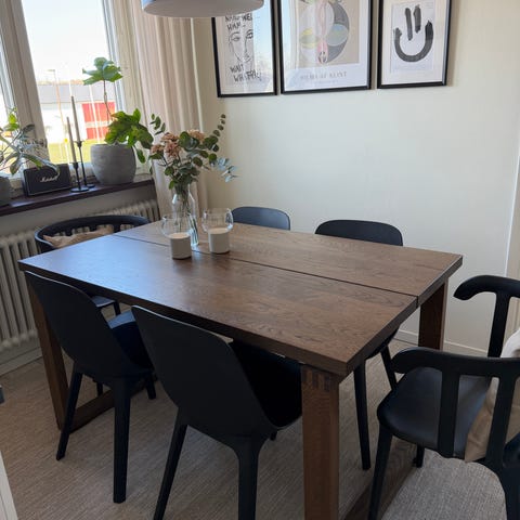 Fint matbord i massiv ek. Väl omhändertagen, slipad och behandlad vid behov.