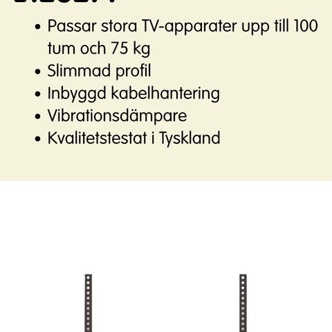 Säljer ett teleskopiskt takfäste för TV 23"-42". VESA-plattan kan vinklar horisontellt +3°-3°, kan tiltas 25°. 180° rotation. Från Jula. Helt ny i förpackning. Org. pris 499 kr. Finns i Åkersberga