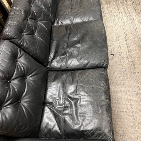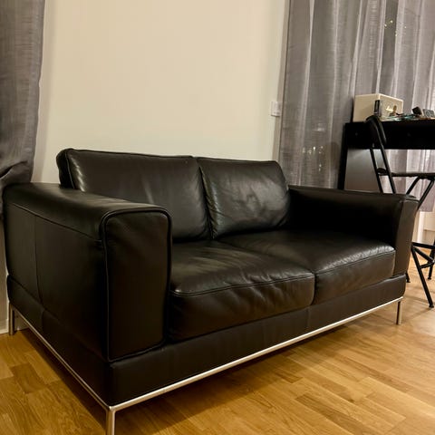 Svart lädersoffa i retrostil, 3-sits
