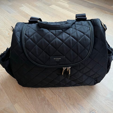 Den har flera fack i olika storlekar, ett isolerat för lagring av varma och kalla flaskor, sköt underlägg och kan enkelt fästas på de flesta barnvagnar.