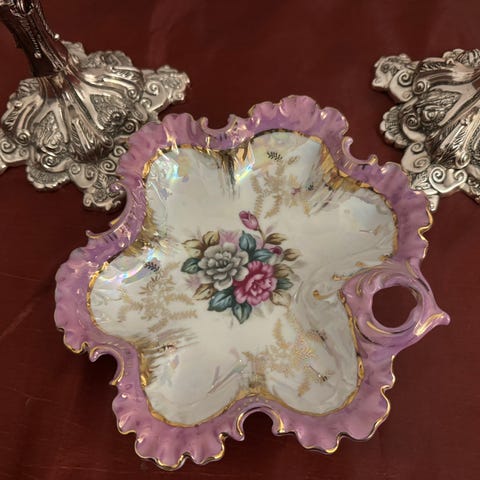en äldre Porslinsblomma med en stängel i krukan och som sedan är delad till två. Hämtas i Bromma Ulvsunda (Piedistalen ingår inte)