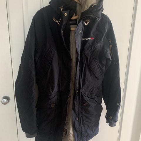 Färgen är grå/brun med avtagbar huva och pälskant. Jackan har Didriksons Storm System, helt vind- och vattentät samt fodrad för att hålla värmen även kalla vinterdagar.