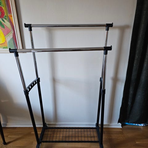 Använde den till garderoben i hallen för barnens jackor så att de nådde att hänga upp, och vanliga stången till oss vuxna.