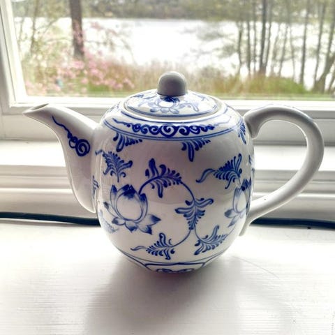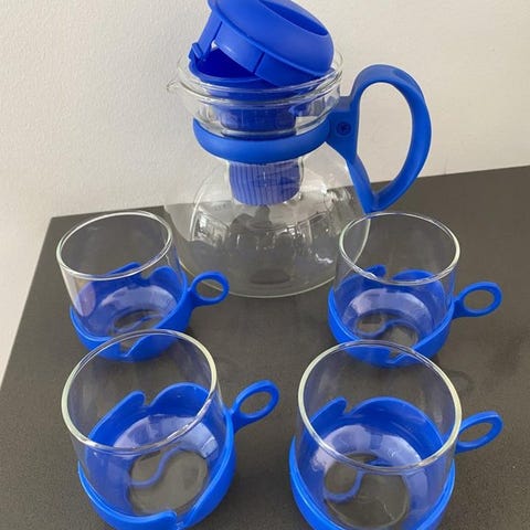 Säljer en vacker tekanna från Arabia i klassiskt blått och vitt, med en rymd på 1,5 liter. Den är både funktionell och stilren, och passar perfekt för te- eller kaffeälskare.