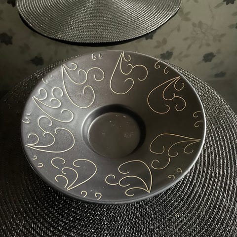 GABRIEL KERAMIK Gabriel Keramik skapades 1925 av konstnären och grafikern Gabriel Burmeister då han köpte upp lokalerna från den då precis nedlagda keramikfabriken Tillinge Fajansfabrik. Höjd: ca 7 cm Diameter botten: ca 17,5cm Skick: mycket fint skick, inga nagg eller sprickor