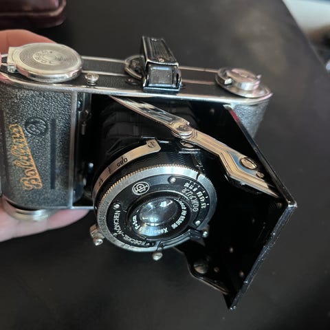 Kamera Agfa Billy-Clack, 1930-talets andra hälft. En klassisk Agfa Billy-Clack kamera. Perfekt för samlaren eller den som är intresserad av vintage fotoutrustning. Kameran kommer med ett tillhörande brunt läderfodral.