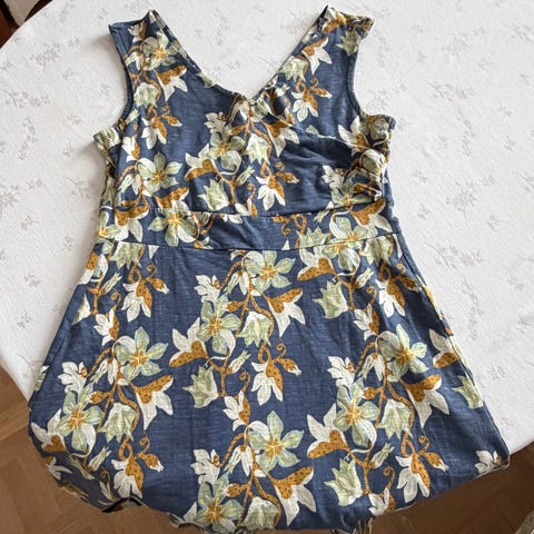 Blommig linne med strechig leggings byxa. Linne storlek large och strechig legging one size.