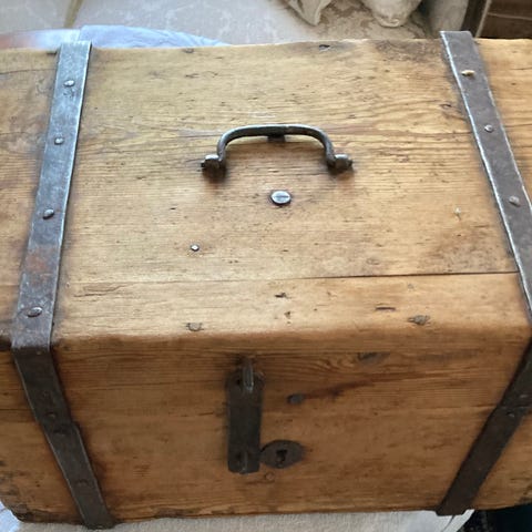 Mindre gammal kista. Ingen nyckel Träknoppen i hör inte till