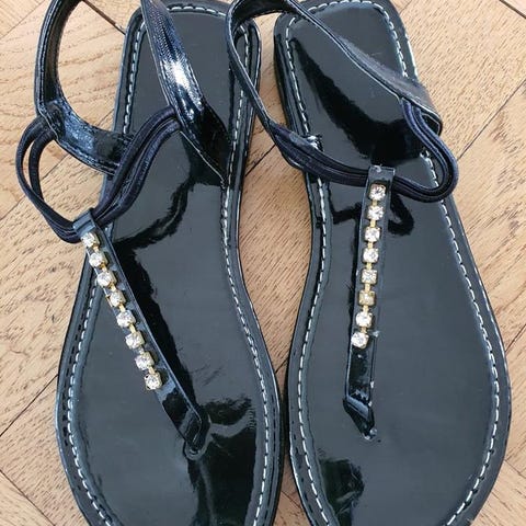 Stylish black strappy sandals with a square toe and thin wrap-around straps. Never worn – brand new and in perfect condition!