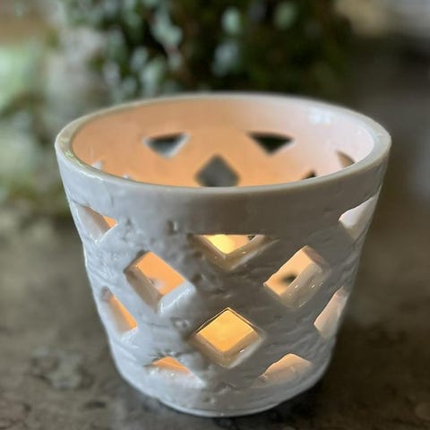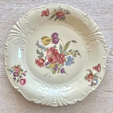 Antik Gallerskål & Fat. Flätat Hålmönster.