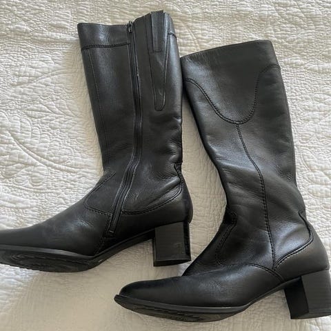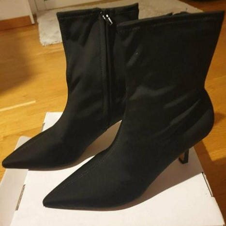 Klackhöjden är 10 cm, men med en liten förhöjning framtill på foten gör dem bekväma.