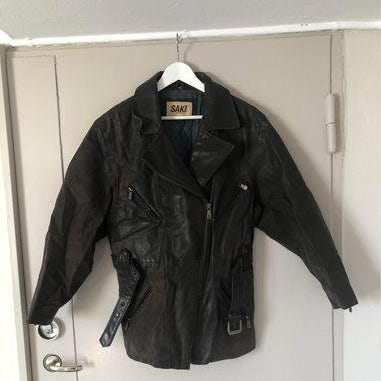 Brun skinnjacka från Saki Collection. Jackan har en ribbad krage och dragkedja samt knappar framtill. Det finns även fickor med dragkedja på bröstet och vanliga fickor nedtill. Jackan har ett brunt foder med innerfickor. Storlek 50 M/L. Tyvärr är dragkedjan på höger ficka fram sönder (bild 3) inget som förstör utseendet på jackan men funktionen. Fin skinnjacka men har lite slitningar/färgskillander som läder kan ha i skinnet.