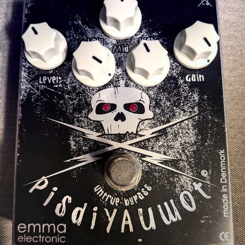 Handbyggd och handmålad Tube Screamer som i jämförelse med många andra låter väldigt transparent. Baserad på 808:an, med carbon comp-resistorer för ett mer vintagesound. Ger en väldigt tydlig och klart sound även vid högre gain. Detta är basvarianten där jag tycker att det låter bättre än den andra, med dess något rundare ljud. Den passar grymt bra till gitarr. Självklart så kan detta styras via levelratten för mer diskant. Kartong och samtliga tillbehör medföljer enligt bild nummer ett.