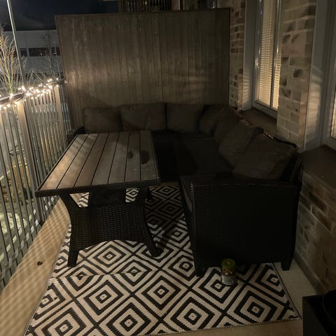 Utemöbel Hörnsoffa med grå dynor och konstrotting